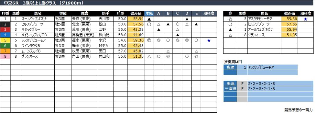 中京6R 3歳以上1勝クラス (ダ1900m)