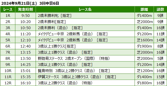 2024年9月21日(土) 中京競馬の全レース予想です。