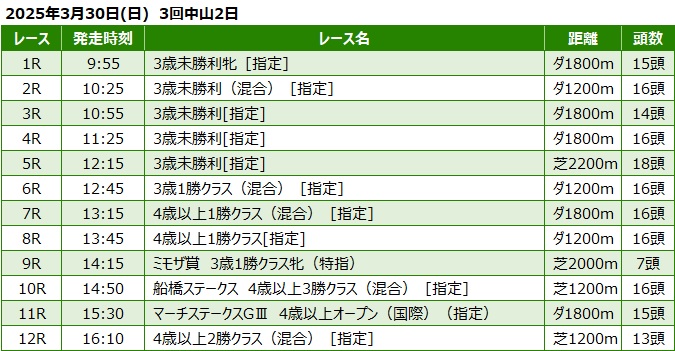 2025年3月30日(日) 中山競馬の全レース予想です。