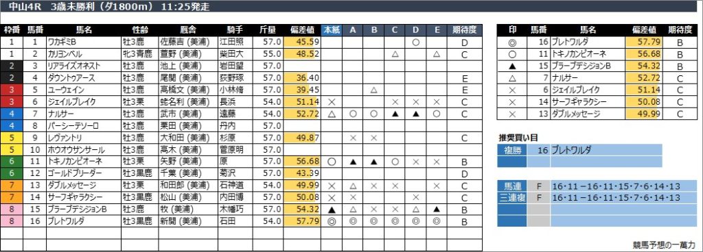 中山4R 3歳未勝利(ダ1800m) 11:25発走