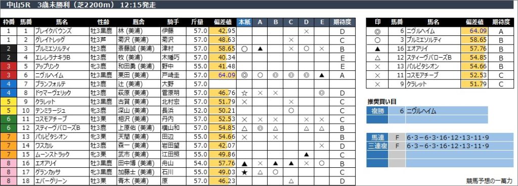 中山5R 3歳未勝利(芝2200m) 12:15発走