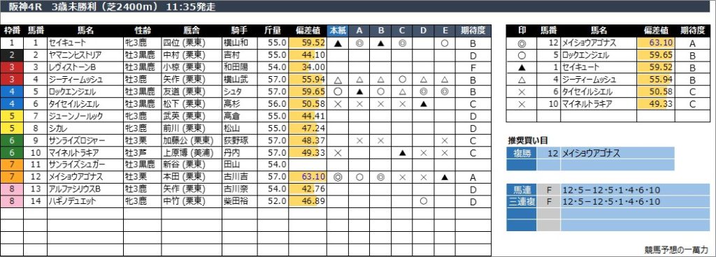 阪神4R 3歳未勝利(芝2400m) 11:35発走