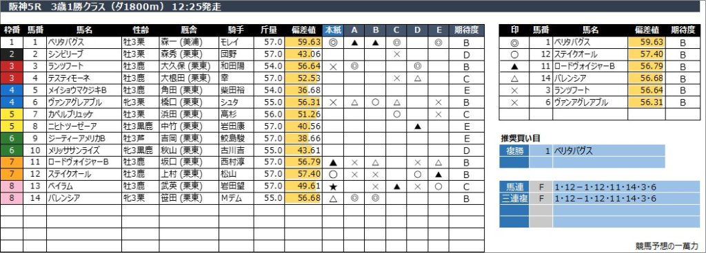 阪神5R 3歳1勝クラス(ダ1800m) 12:25発走