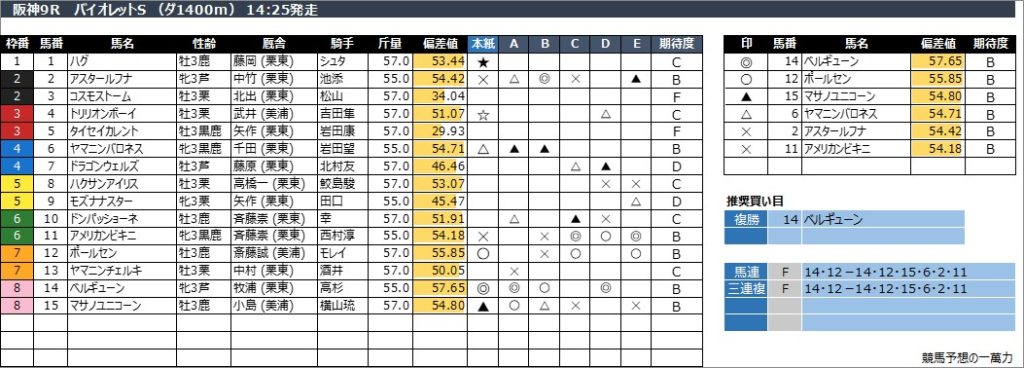 阪神9R バイオレットS (ダ1400m) 14:25発走