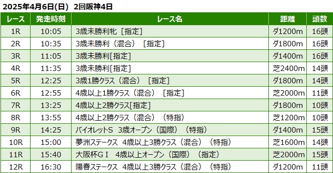 2025年4月6日(日) 阪神競馬の全レース予想です。