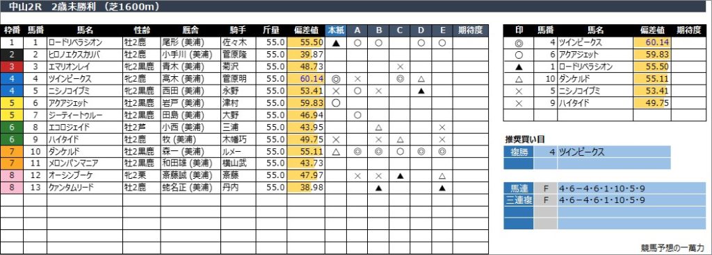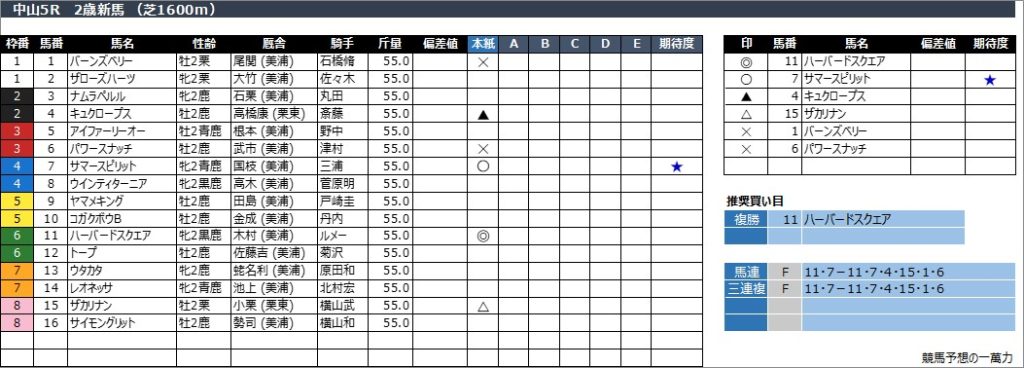 中山5R 2歳新馬 (芝1600m)