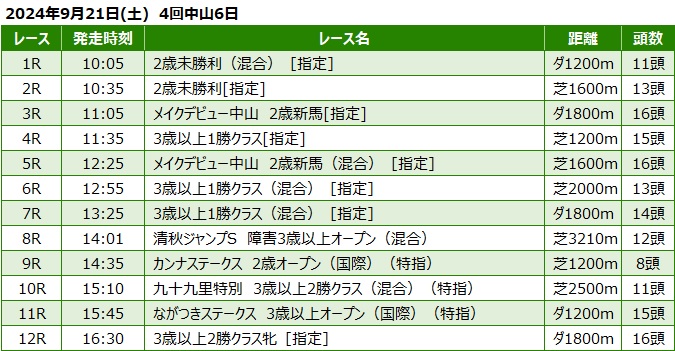 2024年9月21日(土) 中山競馬の全レース予想です。