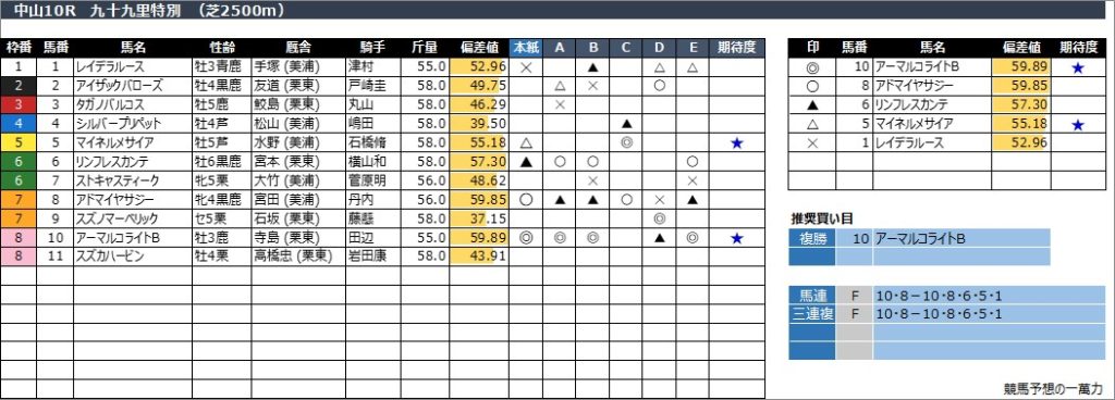 中山10R 九十九里特別 (芝2500m)