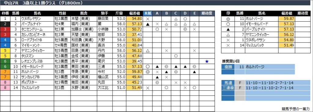 中山7R 3歳以上1勝クラス (ダ1800m)