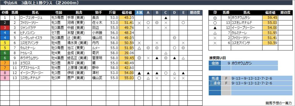 中山6R 3歳以上1勝クラス (芝2000m)