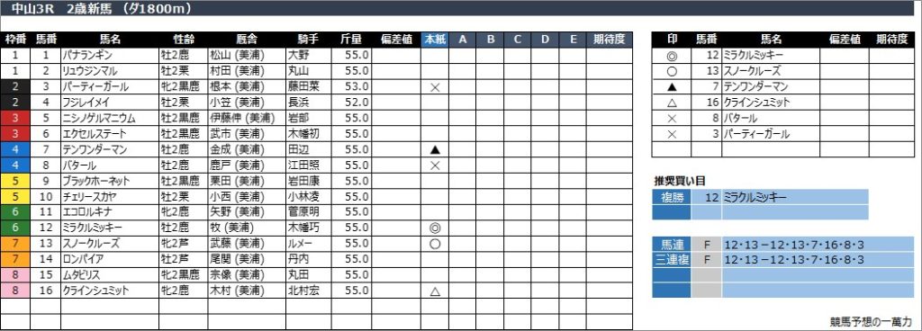 中山3R 2歳新馬 (ダ1800m)