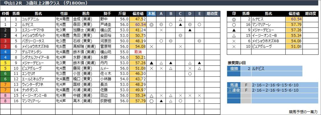 中山12R 3歳以上2勝クラス (ダ1800m)