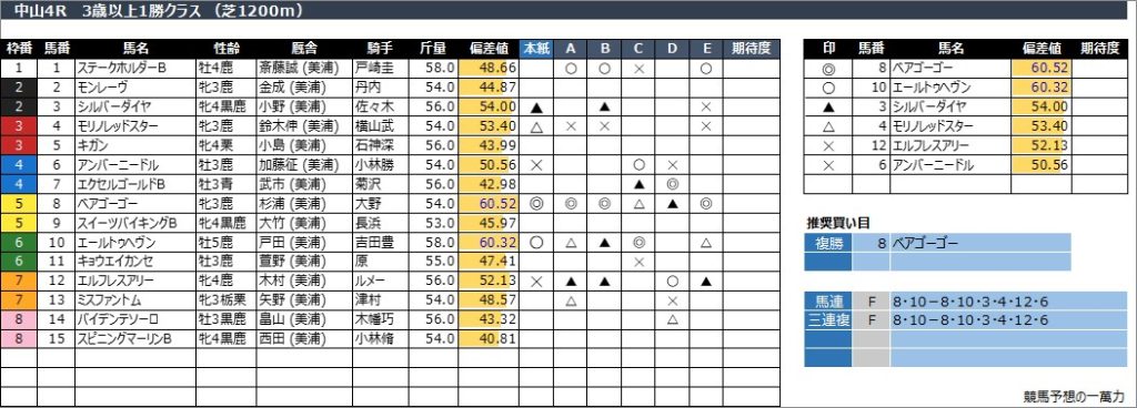 中山4R 3歳以上1勝クラス (芝1200m)
