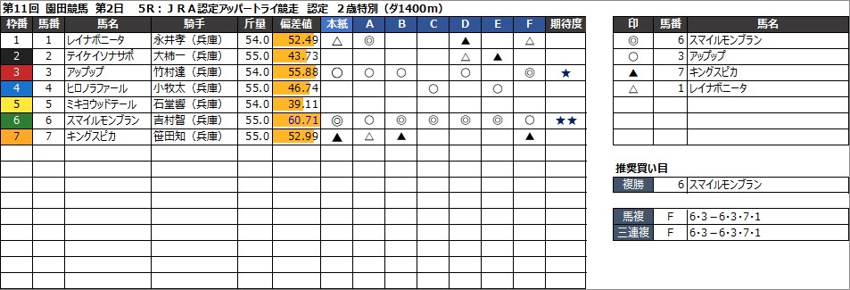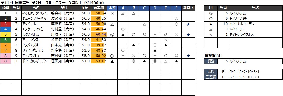 ・馬複 F 7・2-7・2・10・9・6