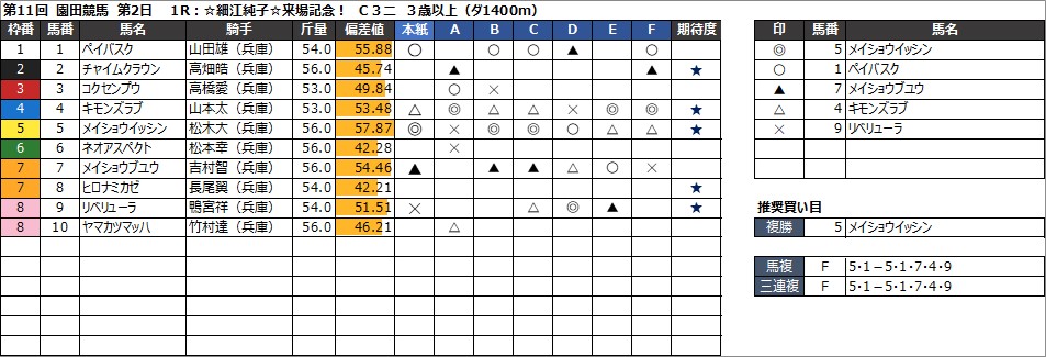 ・馬複 F 5・9-5・9・10・3・1