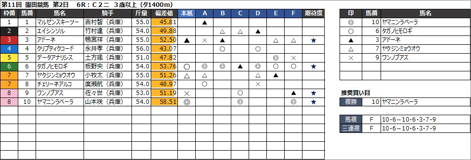 ・馬複 F 2・3-2・3・5・6