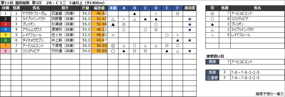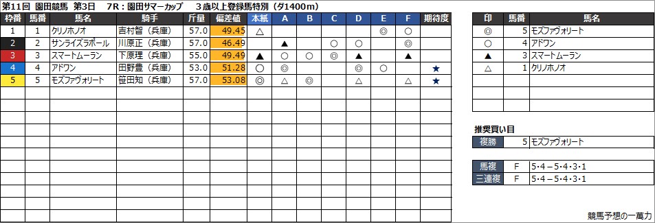 7R:園田サマーカップ 3歳以上登録馬特別(ダ1400m)