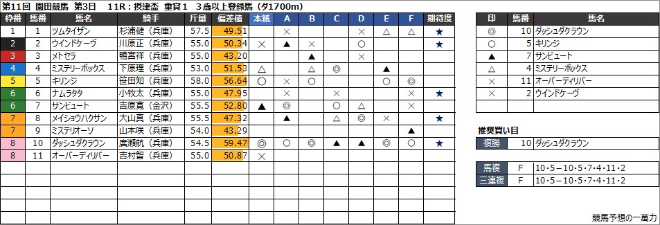 11R:摂津盃 重賞1 3歳以上登録馬(ダ1700m)