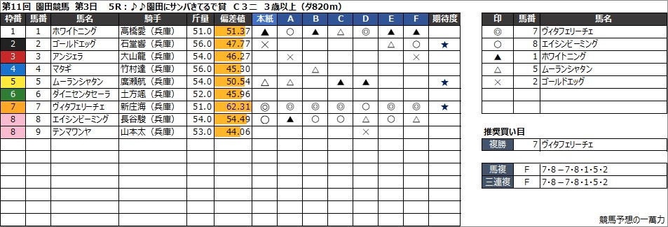 5R:♪♪園田にサンバきてるで賞 C3二 3歳以上(ダ820m)