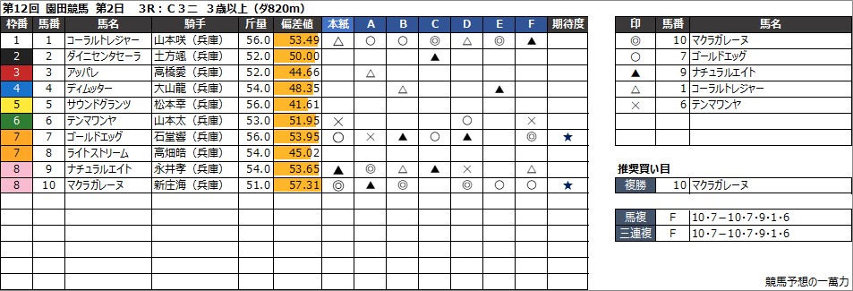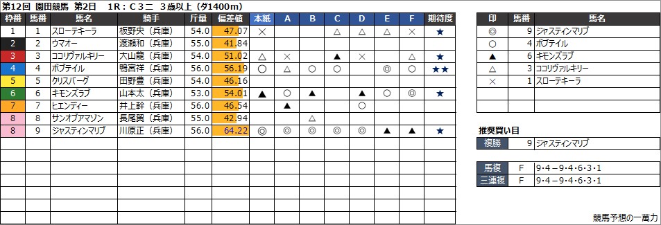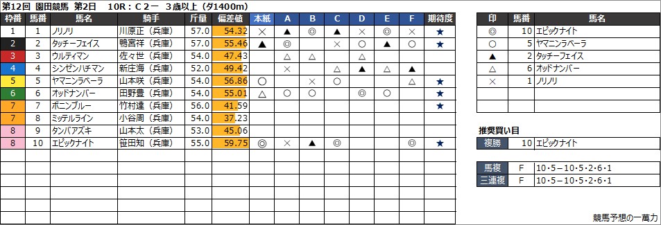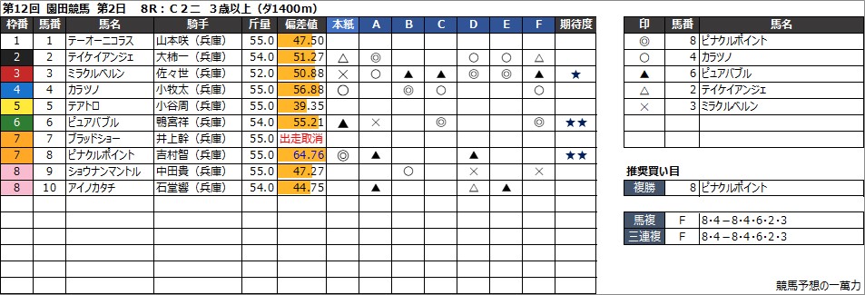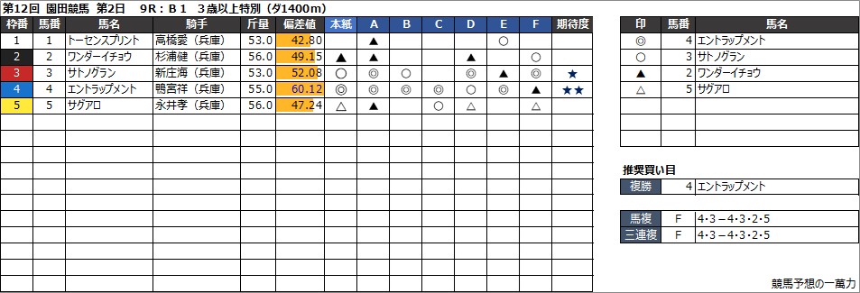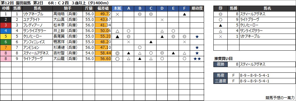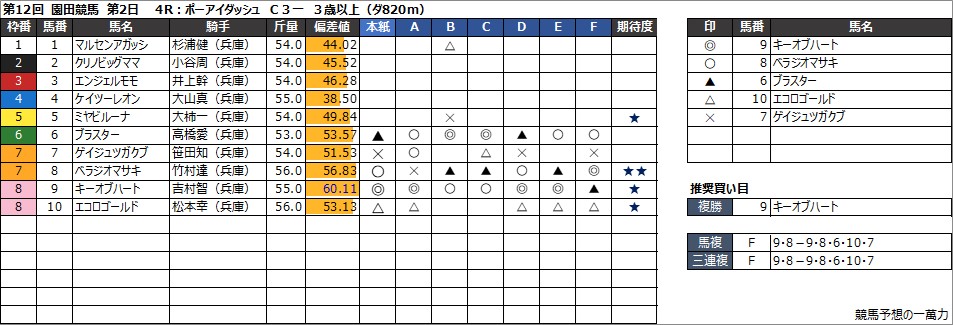 園田競馬予想 8月29日(木) 神戸ビーフ特別 他