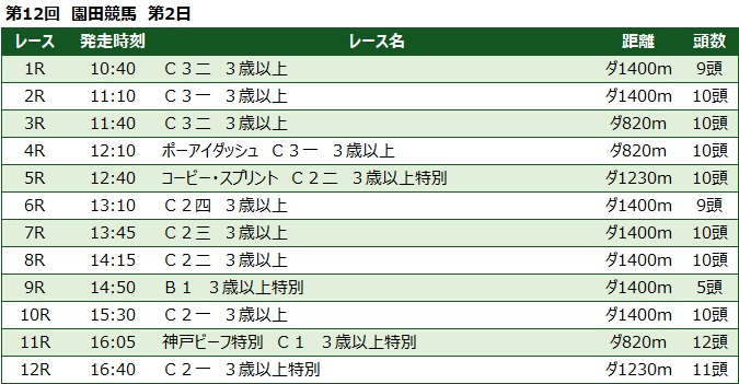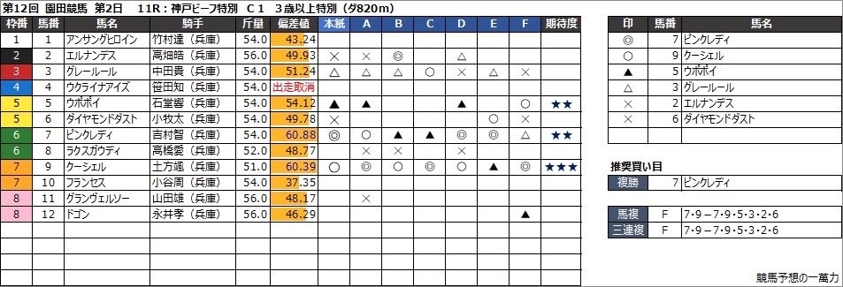 11R:神戸ビーフ特別 C1 3歳以上特別(ダ820m)