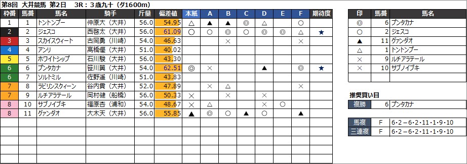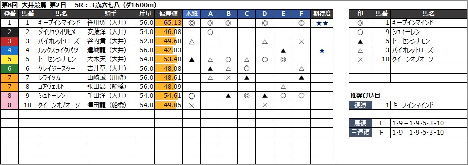 大井競馬予想 8月13日(火) サマーナイト賞 他