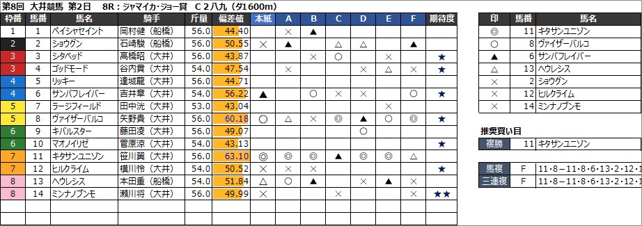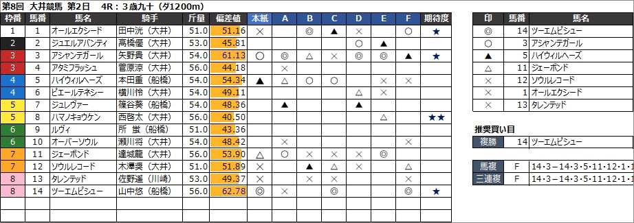 2024年8月13日(火) 大井競馬の全レース予想です。
