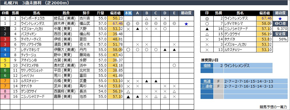 札幌7R  3歳未勝利 (芝2000m)