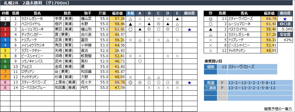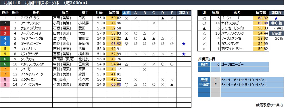 2024年8月17日(土) 札幌競馬の全レース予想です。