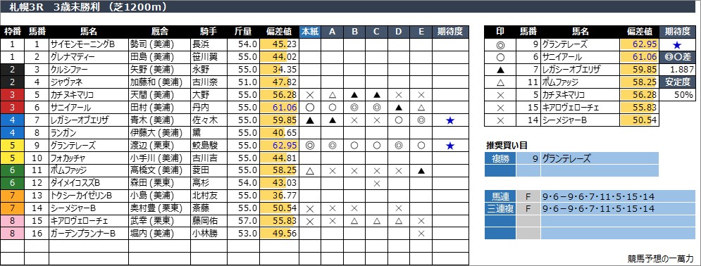 札幌3R  3歳未勝利 (芝1200m)