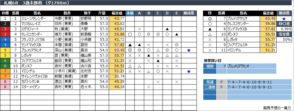 札幌6R  3歳未勝利 (ダ1700m)