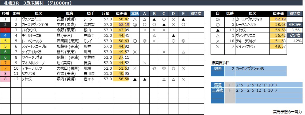札幌7R 3歳以上1勝クラス (ダ1000m)