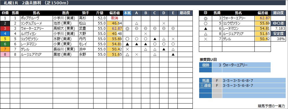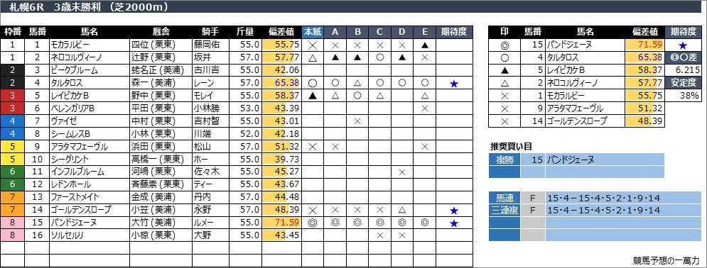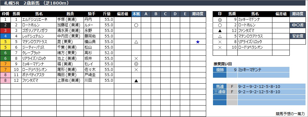 2024年8月25日(日) 札幌競馬の全レース予想です。