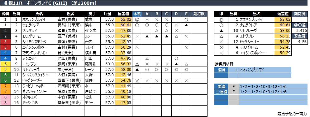 札幌競馬予想 8月25日(日) キーンランドC(GIII) 他