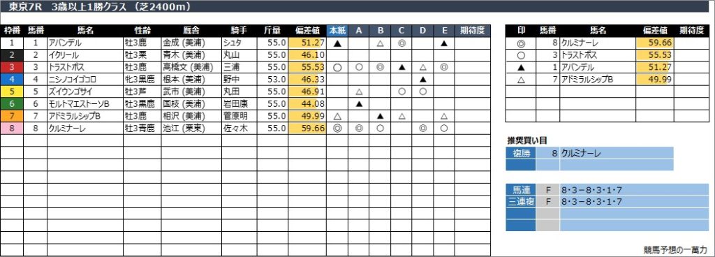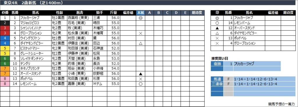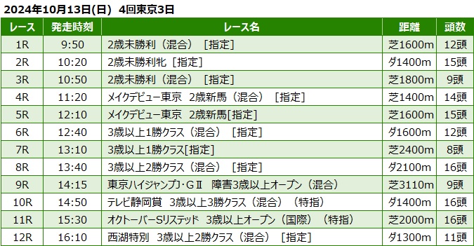2024年10月13日(日) 東京競馬の全レース予想です。