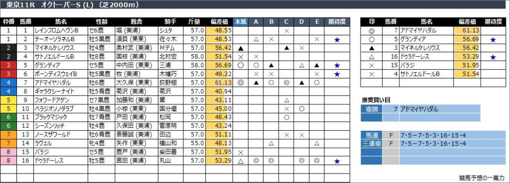 東京競馬予想 10月13日(日) オクトーバーS(L) 他