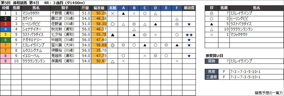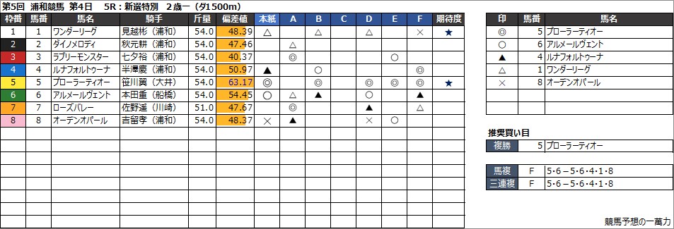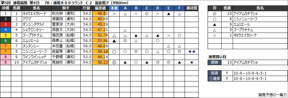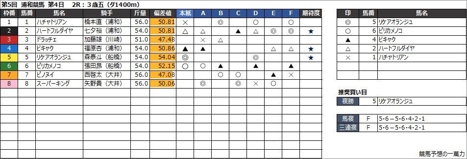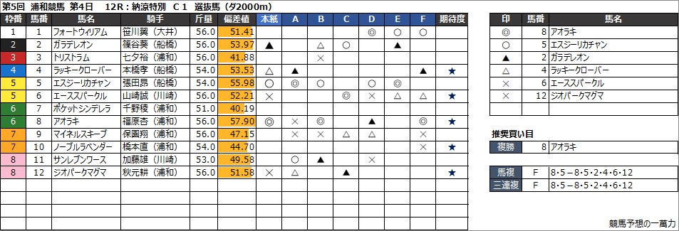 浦和競馬予想 8月22日(木) 葉月特別 他