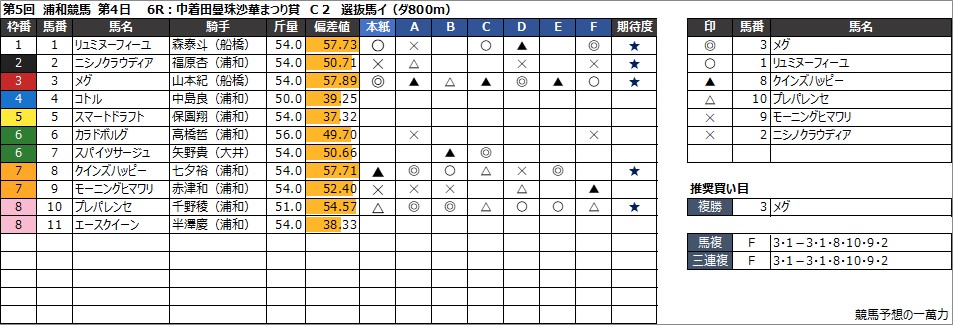 6R:巾着田曼珠沙華まつり賞 C2 選抜馬イ(ダ800m)