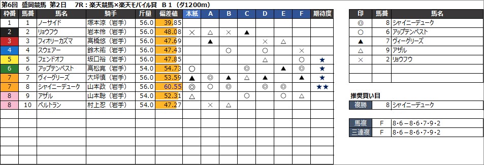 2024年8月14日(水) 盛岡競馬の全レース予想です。