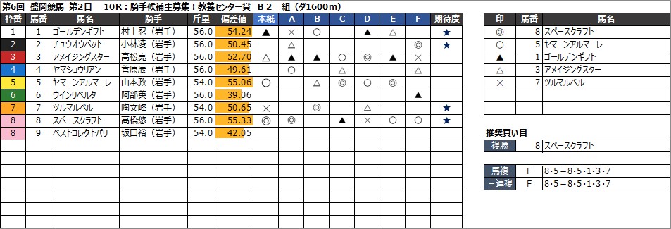 10R:騎手候補生募集!教養センター賞 B2一組(ダ1600m)