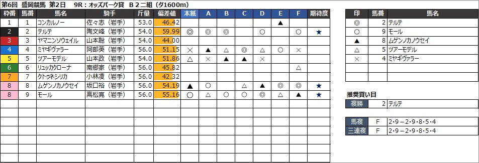 9R:オッズパーク賞 B2二組(ダ1600m)