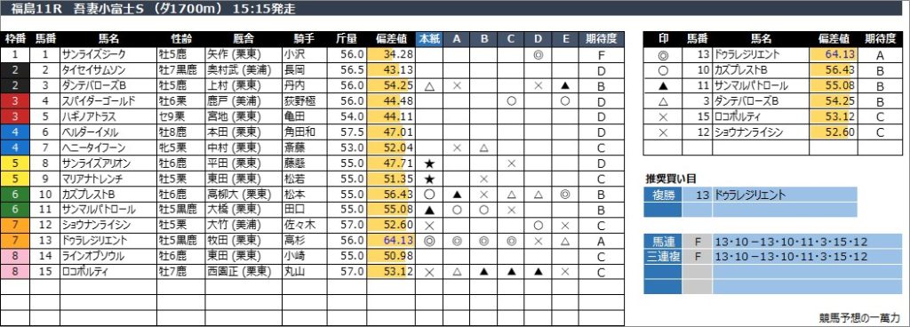 福島11R 吾妻小富士S (ダ1700m) 15:15発走