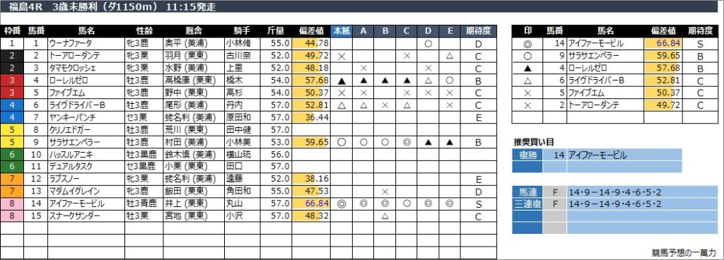 福島4R 3歳未勝利(ダ1150m) 11:15発走