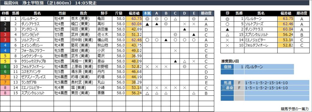 福島9R 浄土平特別 (芝1800m) 14:05発走