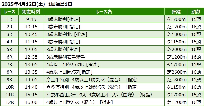 2025年4月12日(土) 福島競馬の全レース予想です。