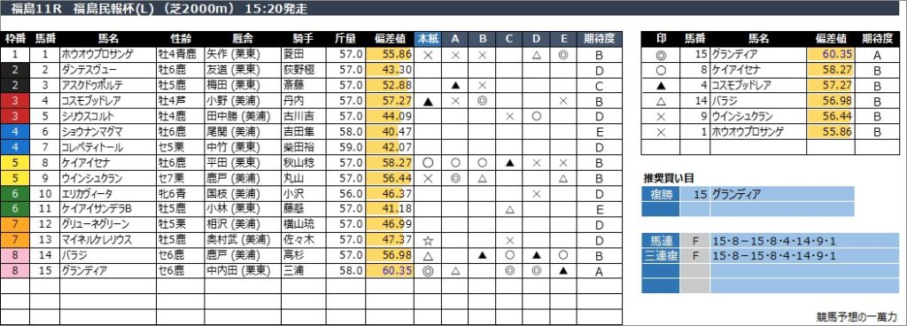 福島11R 福島民報杯(L) (芝2000m) 15:20発走