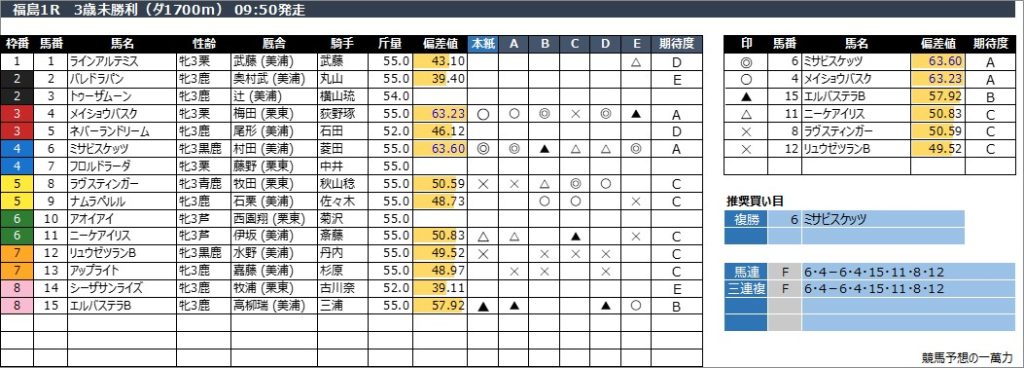 福島1R 3歳未勝利(ダ1700m) 09:50発走