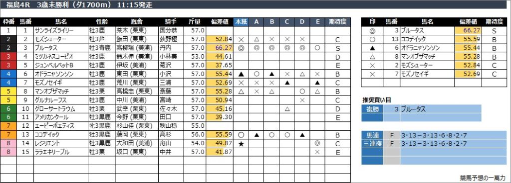 福島4R 3歳未勝利(ダ1700m) 11:15発走