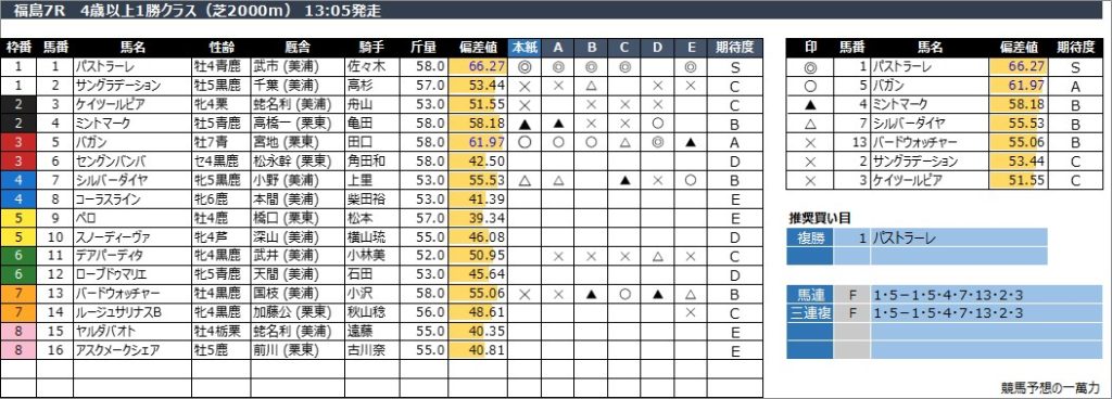 福島7R 4歳以上1勝クラス(芝2000m) 13:05発走