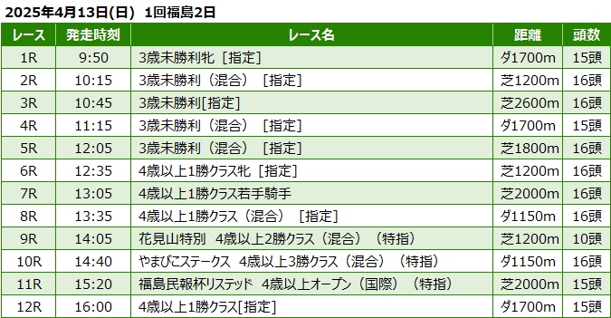 2025年4月13日(日) 福島競馬の全レース予想です。